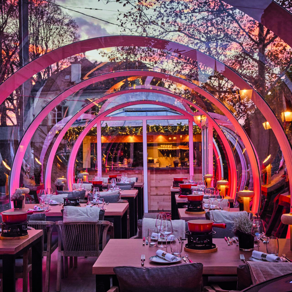 Au Lausanne Palace, l’hiver se vit dans un tout nouveau concept: un espace-bulle « tubbo » installé sur la terrasse, élégant, chaleureux et inédit en ville. Blotti dans des fauteuils cosy, plaid sur les genoux et poêle à pellets pour parfaire l’ambiance, on y savoure la fondue moitié-moitié primée, déclinée aussi au champagne, à la truffe ou au poivre. Une parenthèse alpine immersive et raffinée au cœur de Lausanne. à découvrir sans attendre…