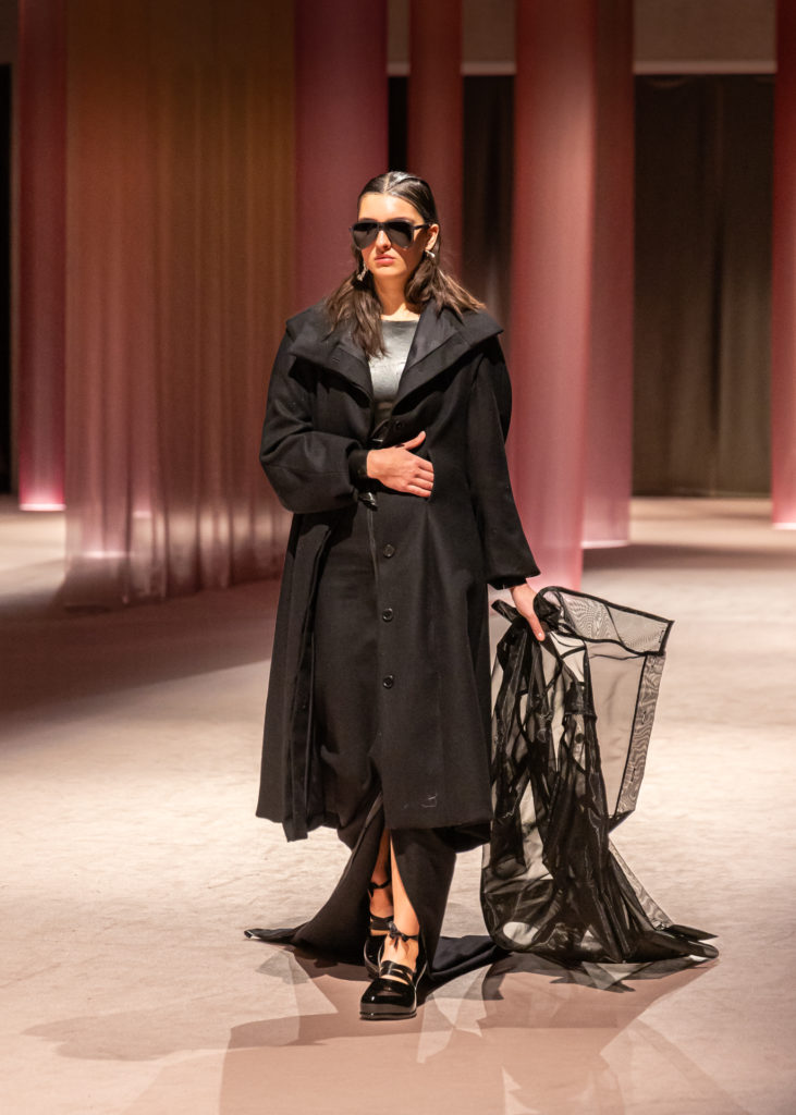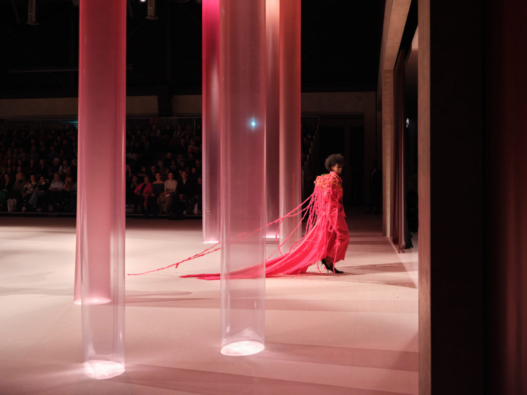 Lumières tamisées et voiles dansants haut perchés se déploient en douceur au cœur du « Cube », ce vendredi 15 novembre. Dans le public, plus de 2000 regards se croisent. Ils oscillent entre curiosité et fascination face à une scénographie mystique digne des grands défilés de Fashion Week. Cette dernière est pensée par les étudiant.e.s du Master Espace et Communication de la HEAD (Haute école d’art et de design de Genève).