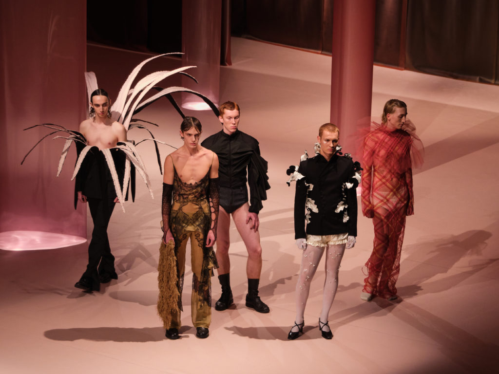 Parmi les collections les plus marquantes de la soirée, celle d’Hippolyte Laporte a également été célébrée. Behind the curtain (2024) a incarné une vision encore plus viscérale de la fluidité des genres. Et magistralement. Les tulles éthérés ont côtoyé des détails presque provocants, tandis que des pièces fragmentées ont, elles, évoqué un prisme baroque teinté d’influences à la Alessandro Michele. A travers sa maîtrise des volumes et des textures, le jeune designer a traduit le brouillage des frontières en fête. Lequel s’est ainsi vu récompensé par le Prix Image et Direction Artistique du Bal des Créateurs. Concept Store qui a par ailleurs accordé une mention spéciale inattendue au masterisé Xavier Weber pour sa collection Wercors (2024). Ce jeune couturier a sublimé la laine et redonné vie à la grisaille hivernale en proposant un point de vue avant-gardiste du streetwear masculin.