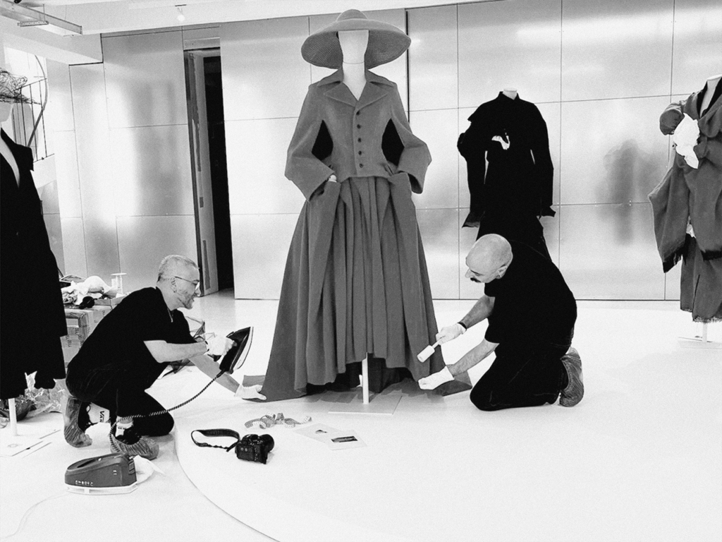 Installée à Paris depuis 1993, la marque DidierAngelo porte en elle l’élégance discrète d’une mode pensée comme une conversation au long cours. A l’origine du label, le duo bâlois Didier Cometti et Angelo Buonomo, dont la collaboration avec le maître japonais Yohji Yamamoto constitue l’un des chapitres les plus fascinants de leur trajectoire. C’est cette relation créative, forgée au fil des années, que le duo a dernièrement consigné dans Preparatory (2024), ouvrage qui a retenu l’attention de la Confédération pour la sélection des Prix suisses du design. Parmi les projets présentés dans ce livre, « Letter to the Future » qui documente la récupération, la restauration et la réinterprétation par le tandem de pièces emblématiques du couturier japonais.
