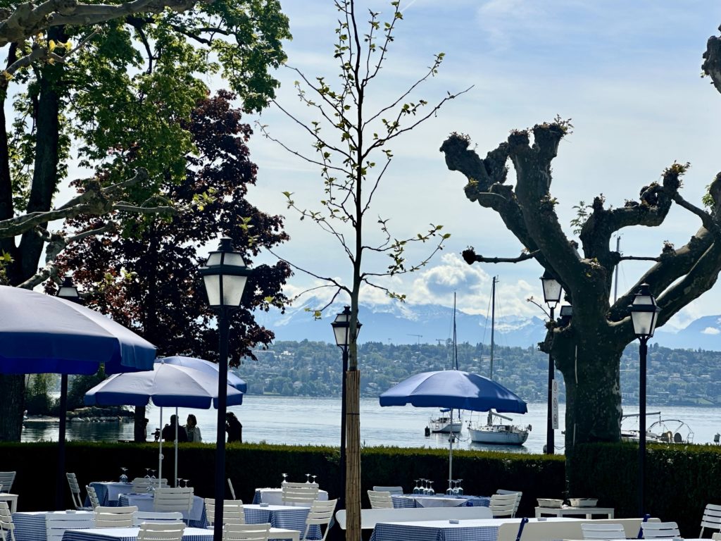 Ancien chantier naval devenu restaurant, cette adresse bien connue des Genevois mêle aujourd’hui vue spectaculaire et plaisirs de la table. Sur la terrasse ou à l’intérieur, on savoure un déjeuner au fil de l’eau, en famille, entre collègues ou le temps d’un tête-à-tête. Tout au long de l’année, et tous les jours de midi à 22h, la cuisine maison régale les papilles. Filets de perche du lac, suggestions de saison, plats végétariens ou véganes : chacun y trouve son bonheur. Chaque semaine, en plus de la carte, un nouveau menu met à l’honneur les produits locaux et les inspirations du chef, tandis que le pâtissier, lui, compose des douceurs qui prolongent les repas… ou enchantent les après-midis. Même une simple pause-café se transforme ici en parenthèse précieuse, bercée par la lumière du lac.