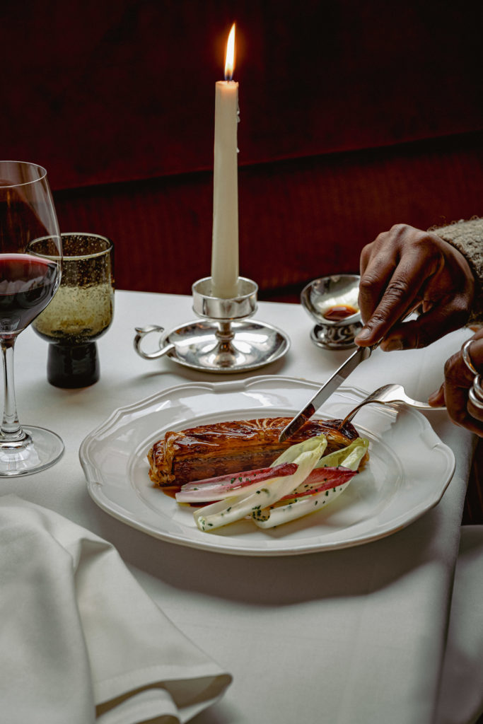 Avant le diner ou en after, l’American Bar est incontournable. Véritable ADN de l’Expérimental Group, le bar à cocktails propose ici des créations signatures inspirées des plus grandes institutions new-yorkaises, ainsi qu’une belle sélection de grands vins au verre, rare et tellement appréciée ! En journée, une immense verrière laisse la lumière naturelle inonder la salle du restaurant et en soirée, le diner aux chandelles crée ainsi un peu plus d’intimité sous une très haute hauteur de plafond et de majestueux lustres. Le service attentionné et précis, des nappes blanches amidonnées et une belle vaisselle sont aussi là pour faire honneur à la cuisine de Mélanie Serre.