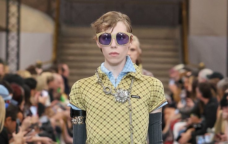 Mais cette marque est loin d’être la seule à adopter cette approche du tout-aller pour la saison. Parmi les autres marques à l’affiche, on trouve Versace, où Donatella a mélangé imprimés et textures, une première dans une collection Versus de 1997. Même constat chez Miu Miu, où ses tissus d’archives ont contrasté avec de nouveaux motifs, puis ont été associés à des mocassins épais et des chaussettes noires d’uniforme.