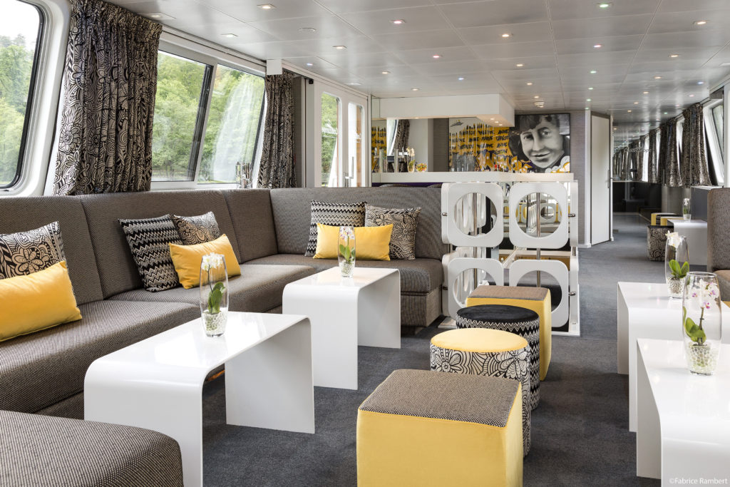 On embarque, on pose ses valises et on oublie le reste. À bord, tout est pensé pour que le voyage se vive pleinement. Les péniches accueillent 22 passagers dans une atmosphère intime propice à la déconnexion. Dans les cabines, chaque détail a sa place : le mobilier bien pensé, la décoration chaleureuse et élégante créent une sensation immédiate de tranquillité. À l’étage, le restaurant s’ouvre largement sur le paysage, on y savoure une cuisine délicate dans un cadre raffiné. Le lounge-bar invite à prolonger les conversations après le dîner tandis que le jacuzzi attend les moments plus calmes. Sur le pont-soleil, les transats deviennent vite les postes d’observation préférés des passagers. Tout est inclus, pour ne penser à rien, sauf à profiter.