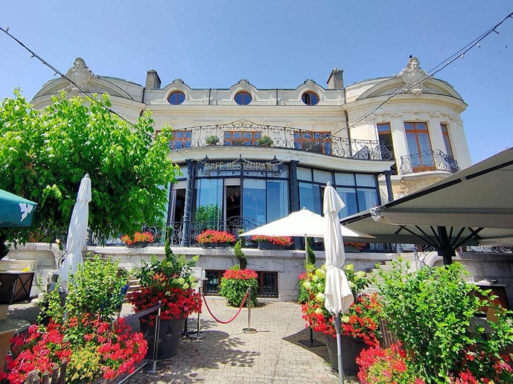 C’est l’une des plus belles terrasses du bord du Léman, devant un palais néo-rococo de la Belle-Époque. Et figurez-vous que ce restaurant vient d’être repris par un sacré duo: Thibaud Gardette et Remy Gravelaine viennent de l’Hôtel de Ville de Crissier. L’un y était second de Franck Giovannini, l’autre chef sommelier. Mais ici, ils lancent un restaurant où les familles viennent manger le poulet du dimanche, où l’on déguste un pâté en croûte d’anthologie ou des filets de perches du lac. Ou alors, simplement une glace ou l’apéro.