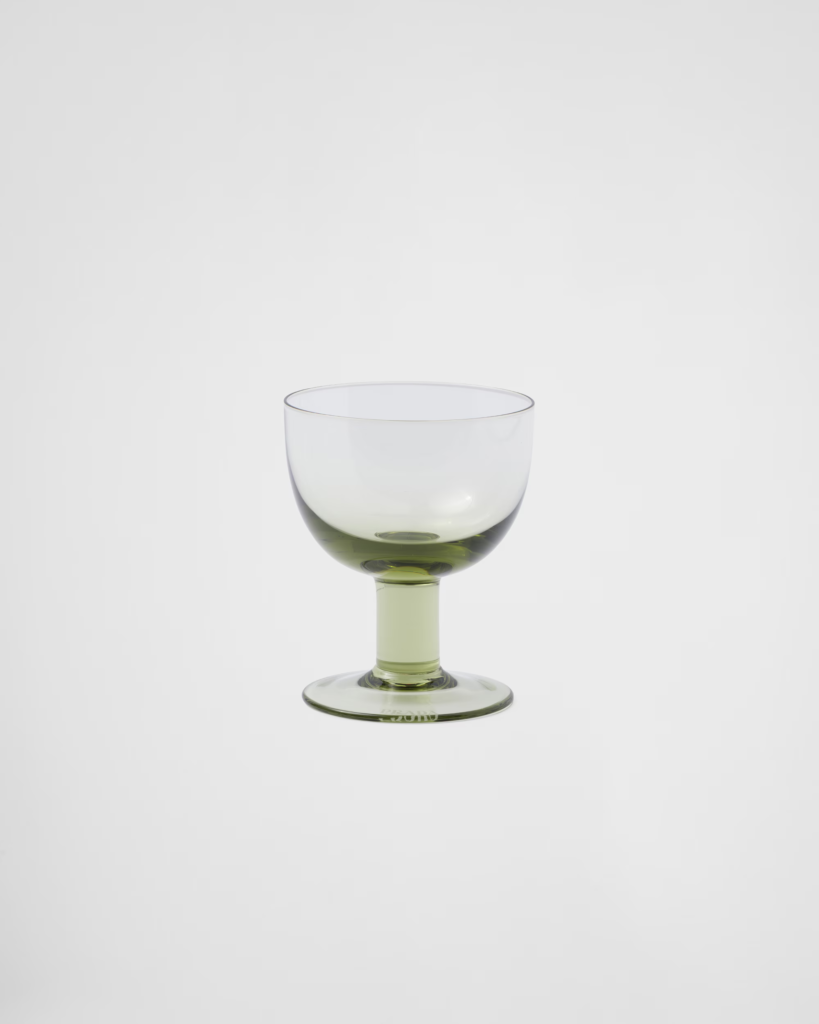 Élégants et minimalistes, ces verres en cristal de Prada offrent une clarté exceptionnelle, incarnant un design moderniste et une élégance raffinée.