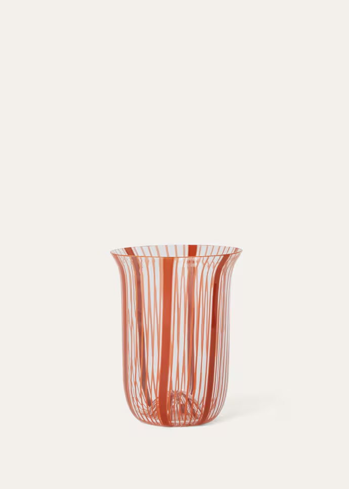 Fabriqué à la main à Murano, ce verre élégant fait écho à l’emblématique Suitcase Stripe de Loro Piana dans une forme unique, intemporelle et raffinée.