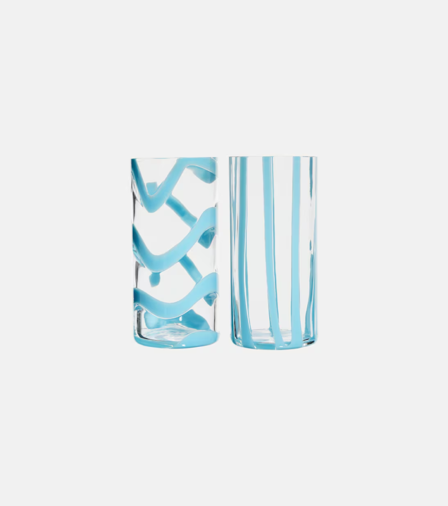 Des verres aux teintes précieuses soufflés à la bouche à Murano – proposés par Laguna B, Loro Piana ou encore Nason Moretti – aux flûtes pastel et vaporeuses dénichées dans des petites boutiques confidentielles de Londres, la verrerie raconte une histoire : celle d’un lieu, d’un savoir-faire… et de votre propre style. Ici, rien de standardisé ni de figé. Chaque pièce vibre de la main de l’artisan. À Barcelone, les verres Los Vasos de Agua Clara sont peints à la main de délicates libellules en plein vol, comme figées dans un jardin d’été. À Oaxaca, le verre recyclé est fondu puis façonné en formes volontairement imparfaites, dans des teintes douces qui rappellent les ciels du désert au crépuscule.