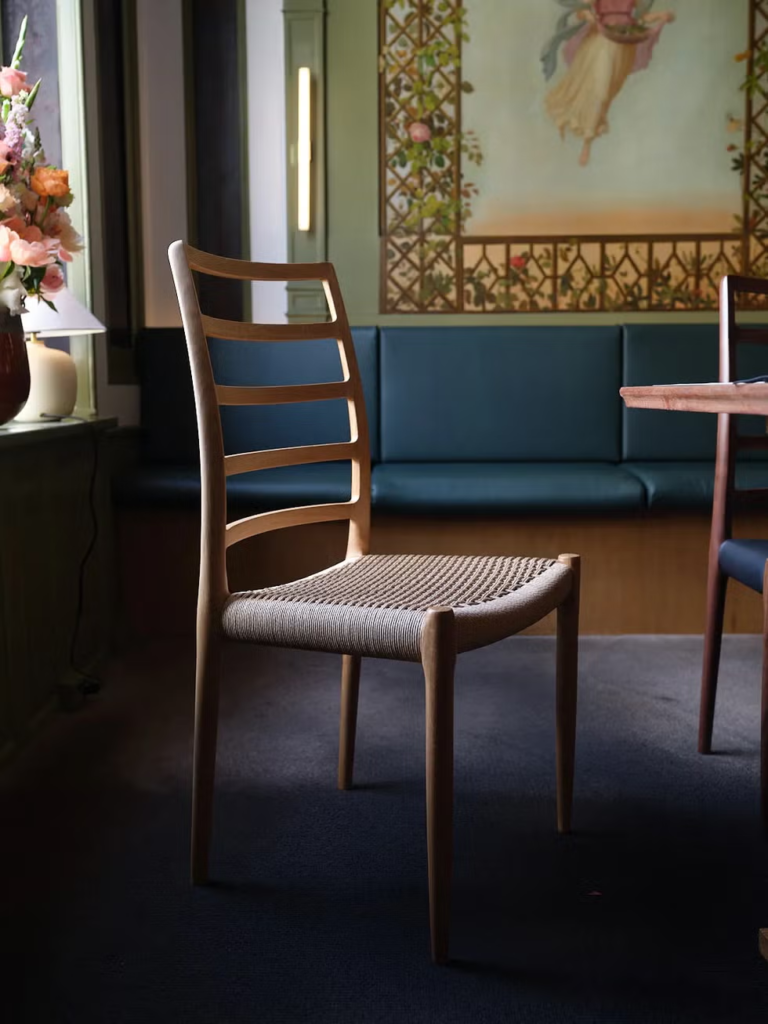 Dans un geste qui fait le lien entre héritage et modernité, Design Within Reach réédite l’élégante chaise Møller 82 de J.L. Møllers Møbelfabrik, surnommée avec affection « Embassy Chair ». Conçue en 1970 et fabriquée à la main à Aarhus, au Danemark, cette chaise à haut dossier et barreaux horizontaux renaît aujourd’hui en exclusivité pour le marché américain.
