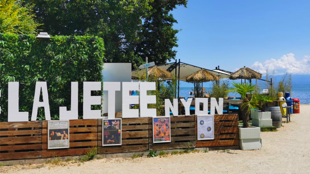 A Nyon, dès que le soleil commence à décliner, les estivaliers file à La Jetée. Ce beach bar ouvert depuis 2014, d’avril à octobre est devenu une vraie institution. Un cocktail signature à la main, les pieds dans le sable, la tête dans les derniers rayons d’or… Difficile de rêver mieux. L’ambiance y est toujours juste : assez chill pour papoter entre amis, assez rythmée pour danser dès que la musique monte, de jour comme de nuit. Durant tout l’été, sont proposés des « afterwork musicaux » tous les vendredis soir et des apéros humour « Impro-Transat » un jeudi par mois. Sans oublier la possibilité de participer à des cours hebdomadaires tels que de la Zumba ou encore du Yoga. Bref, c’est l’endroit où l’on vient pour décompresser, célébrer ou simplement admirer un coucher de soleil qui, ici, semble chaque soir voler la vedette.