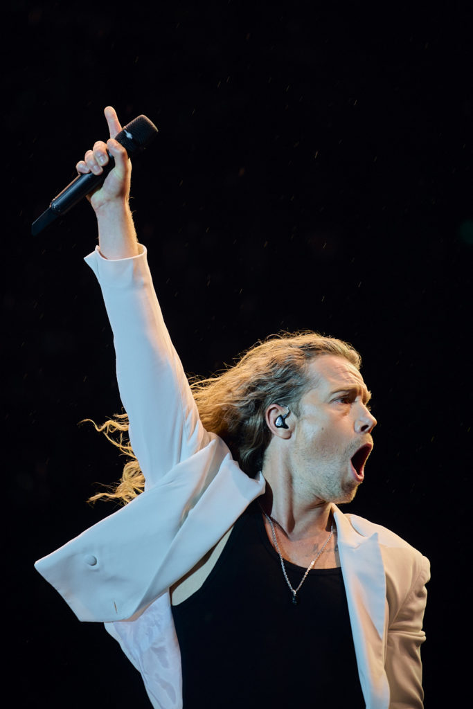 Habitués du Festival, Jean-Louis Aubert, Clara Luciani ou Julien Doré étaient également présents. Le chanteur à la crinière dorée arpentait le Paléo pour la quatrième fois, réunissant autour de ses chansons toutes les générations confondues grâce à une générosité et une complicité avec le public alliées à une bonne dose d’autodérision. Son arrivée sur scène en scooter, derrière un panda, aura fait sourire, peut-être pas autant qu’un autre artiste charismatique…En effet, s’il a ému le public en faisant monter sur scène une petite Emma de 6 ans, ce sont des bananes que Philippe Katerine a conviées à le rejoindre sur la grande scène du Paléo pour interpréter son tube du même nom. Le trublion français ose tout. Rien ne l’arrête, surtout pas le ridicule « qui ne tue pas » scandait-il à la fin de sa première interprétation. Et le public en redemande encore, sensible à sa poésie si originale. Déguisé en reine d’Angleterre, en Jules César, ou revêtu d’un simple string, il a proposé un spectacle d’une grande créativité.