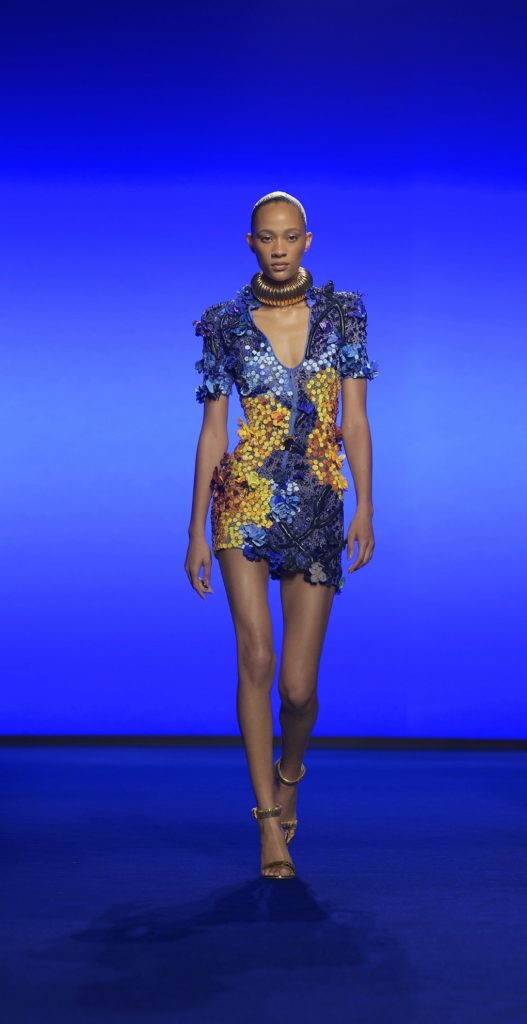 Aujourd’hui, la mode continue son exploration. Une fleur peut se penser monochromatique et sculpturale comme chez Erdem, qui imagine une broche comme cueillie au jardin. Schiaparelli invente une robe où la femme devient une multitude de sequins peints à la main selon des motifs floraux, essence puissante et invincible. Chez Stella McCartney, militante d’une mode plus responsable, la nature est sacrée: son défilé printemps-été 2025 était une ode à la protection des oiseaux. Quant à Longchamp, les légumes du potager se dessinent sur des foulards, puis le vert pré s’installe avec gaieté sur la collection.