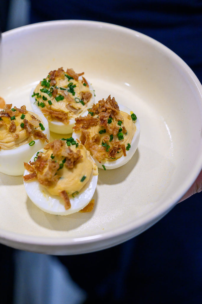 Pour la partie culinaire, Benjamin Luzuy, mais également Marie Luzuy et Paul Cassigneul ont tous trois confié les clés de la cuisine au chef Romain Maillot. Celui passé par La Réserve Genève et la Cordée des Alpes à Verbier insuffle dans les cuisines de l’Auberge Port-Gitana une gastronomie réconfortante mais fine, généreuse mais précise, dans laquelle les produits locaux tiennent plus que jamais la vedette. Parmi les plats signatures : les filets de perche et leur sauce Beurre Gitana, la bouillabaisse « mer et lac », ou encore les très genevois œufs mayo twistés avec élégance. La meringue double crème est l’autre véritable star de la tablée que certains clients viennent goûter… parfois sans même commander de plat principal.