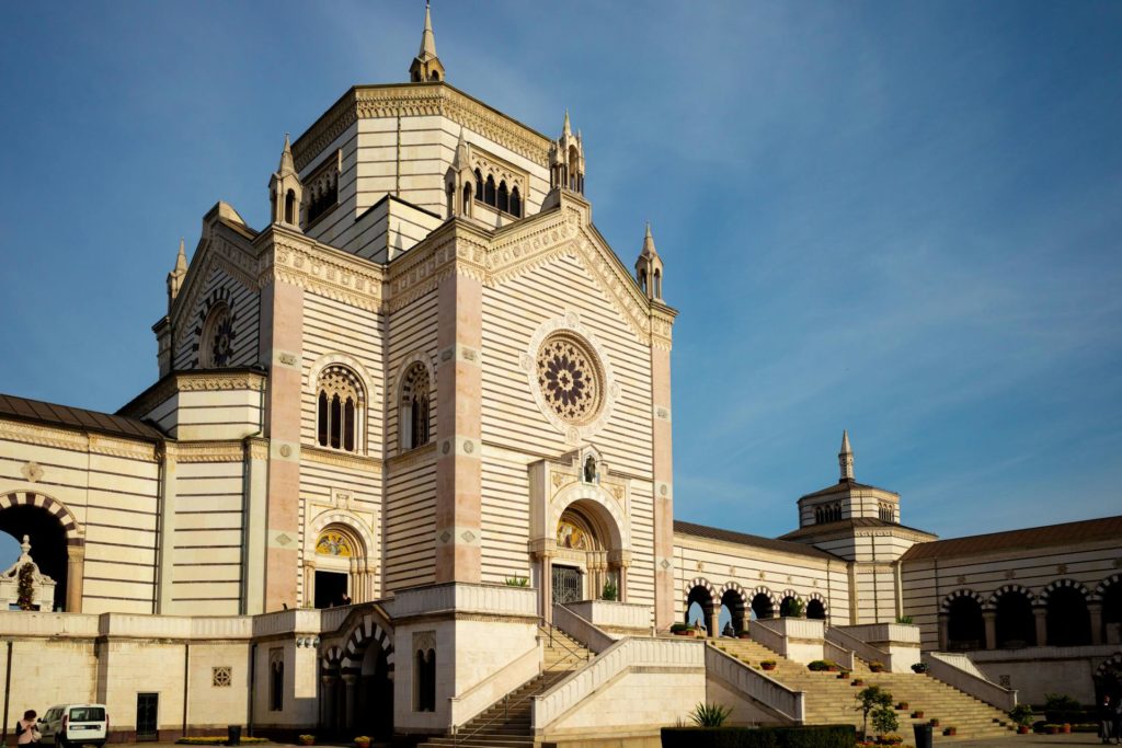 Ainsi, le Cimetière monumental de Milan, lieu de mémoire inauguré en 1866 et ouvert « à toutes les formes et à toutes les fortunes », où le goût éclectique de l’époque s’exprime par des audacieuses associations entre biforiums gothiques, briques lombardes et inserts de style byzantin. On y trouve les tombes de personnages célèbres ayant contribué à illuminer la ville, comme Alessandro Manzoni, Carlo Cattaneo, Filippo Turati, Anna Kuliscioff, Alda Merini, Enzo Jannacci, Gino Bramieri, Dario Fo et Franca Rame, et l’on peut y admirer les œuvres d’un artiste de grand talent comme Adolfo Wildt, qui a réalisé pour le Monumental plusieurs monuments et chapelles funéraires.