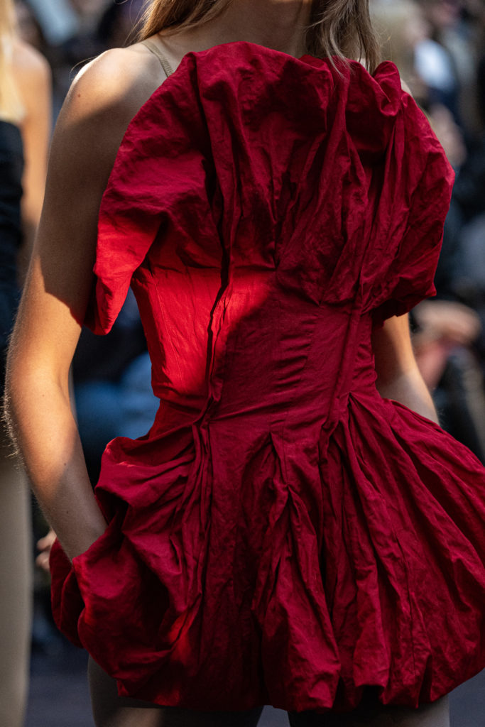 Magda Butrym a tout compris de la jeune griffe qui marque les esprits. Une pièce phare en fil rouge, des couleurs et matières signatures, un dressing phare déconstruit sous nos yeux. Ce dimanche 5 octobre, le public se voit ainsi happé par ce doux exercice de création, où chaque détail raconte l’histoire de la créatrice éponyme. Pour son premier défilé de mode au sein de la Fashion Week de Paris, sa collection respire la précision poétique.