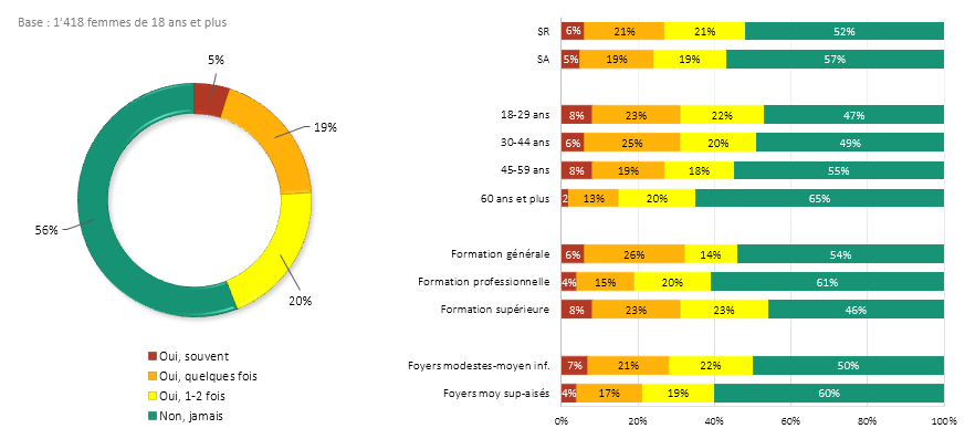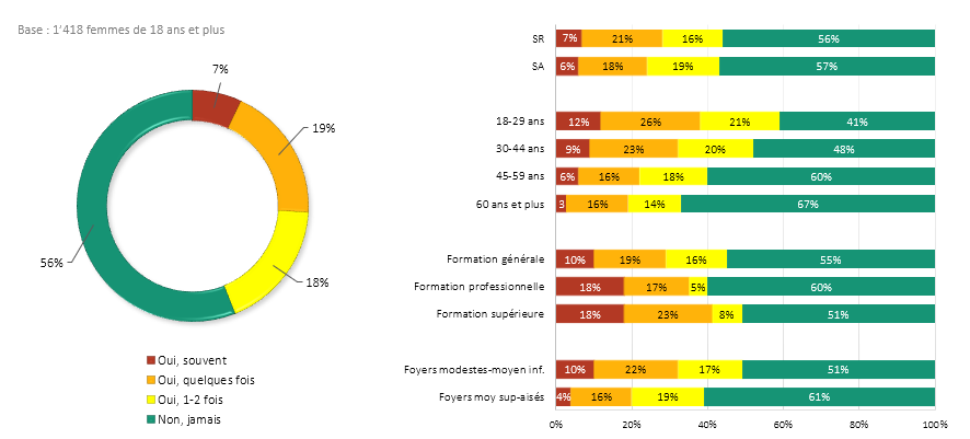 Près d’une femme sur deux (44 %) affirme avoir déjà eu le sentiment que son état de santé n’était pas pleinement pris au sérieux par un professionnel médical en raison de son genre. Si la majorité d’entre elles évoquent des expériences ponctuelles -19 % « quelques fois » et 18 % « une fois » -, la tendance révèle un malaise persistant dans la relation de confiance entre patientes et soignants, surtout du point de vue des 18-29 ans : 59 % d’entre elles déclarent avoir vécu ce sentiment, bien plus que leurs aînées qui sont 33 % à corroborer ce constat.
