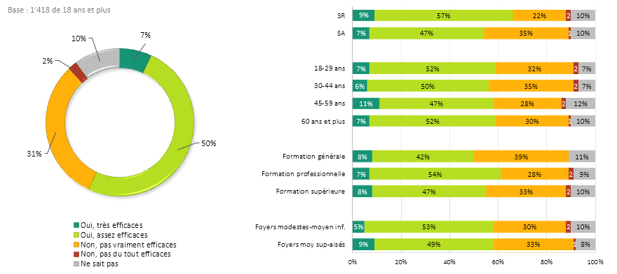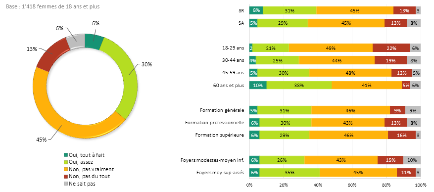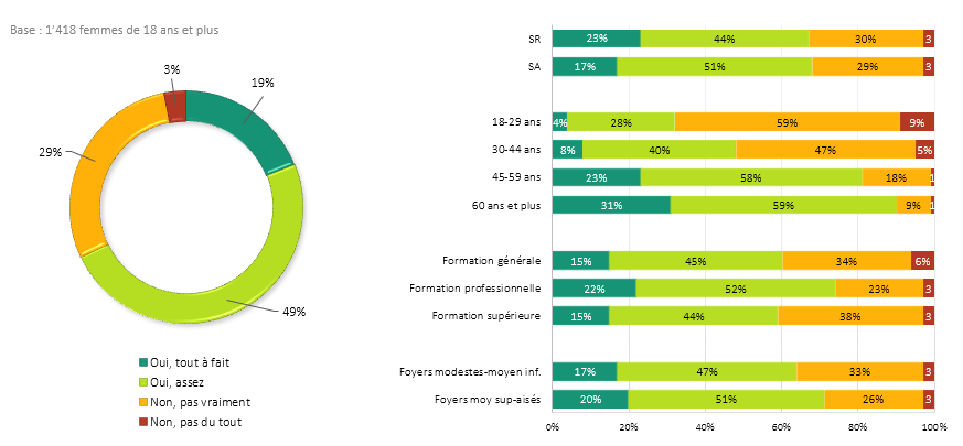 Un peu plus d’une femme sur deux (57 %) estime que les campagnes de sensibilisation comme Octobre Rose remplissent leur mission de prévention et d’information. Reste toutefois qu’un tiers de la population féminine reste sceptique. Les opinions se révèlent équilibrées entre les générations, les régions linguistiques et les niveaux de formation.