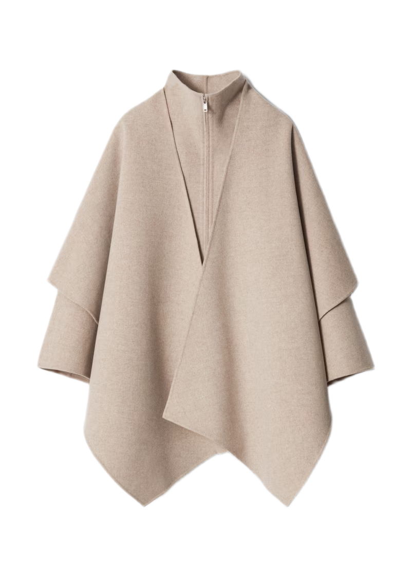 Une cape en laine incarne l’élégance intemporelle. Optez pour un noir indispensable, un camel ou un marron neutre, ou encore un motif pied-de-poule classique, parmi d’autres options tout aussi raffinées.