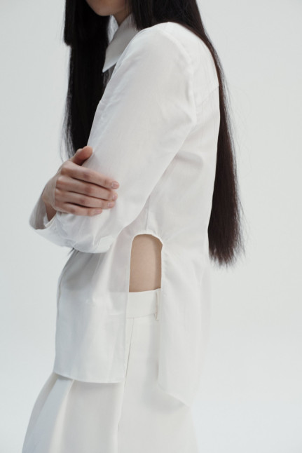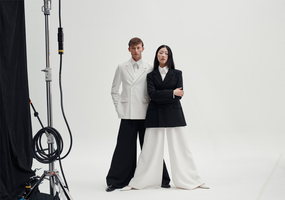 Disponible depuis fin octobre sur le site de la Redoute, la collection capsule inclut des tailleurs et des chemises pensés comme des volumes en mouvement. Et pour une raison particulière : « J’ai depuis toujours un amour particulier pour le tailleur. Je souhaite préserver cet héritage de montage articulé à l’exercice créatif », explique le jeune designer. Passé par les ateliers exigeants de The Row, dont on perçoit la savante influence, Alan Clerc co-signe cinq pièces habillées de ses couleurs fétiches – le noir et le blanc.