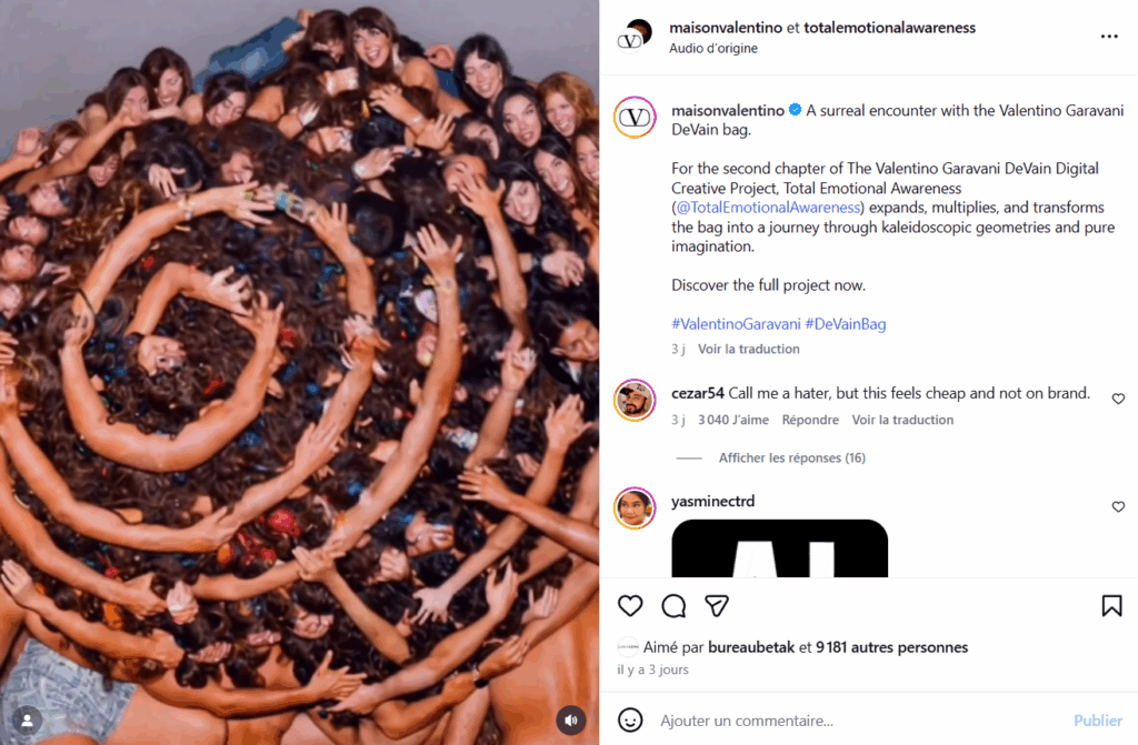 Mais l’effet avant-gardiste escompté par la prestigieuse maison italienne n’a pas pris. Sur les réseaux sociaux, les amateurs de mode ont oscillé entre incompréhension et consternation face à une réalisation jugée « dérangeante » : « Traitez-moi de rabat-joie, mais ça fait bas de gamme et ça ne colle pas à l’image de la marque », tacle l’un. « L’IA ne rivalisera jamais avec le luxe et l’artisanat », déplore un autre. « Je ne pensais pas voir des pubs générées par IA venant de Valentino dans mon feed », s’étonne un troisième. Dans cette avalanche de critiques, un sentiment est largement revenu : celui d’une communication considérée comme « bâclée » par une maison pourtant réputée pour son raffinement. « Quand on paie vos prix, on s’attend à mieux », assène un commentaire massivement liké.