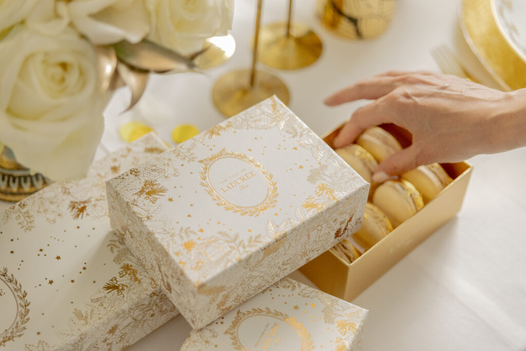 Impossible d’imaginer les fêtes sans les macarons Ladurée, ces petites touches de couleur qui illuminent une table. Entre saveurs iconiques et éditions de saison, ils s’offrent comme une attention gourmande et chic. La personnalisation ajoute une note unique: un message, un motif ou une photo imprimée pour créer un cadeau chaleureux, à la fois élégant et très personnel.
