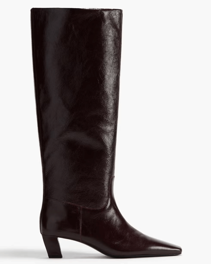2025 est indéniablement l’année de la botte. Plus que d’habitude, de nouveaux modèles ont émergé et se sont imposés comme les incontournables de la saison : silhouettes souples et affaissées, lignes nettes façon seconde peau, cuirs brillants dans des nuances chaudes… Après plusieurs années de domination des bottes noires massives, l’heure est désormais à la douceur des tons naturels. Et celle qui tire son épingle du jeu ? La botte bordeaux.