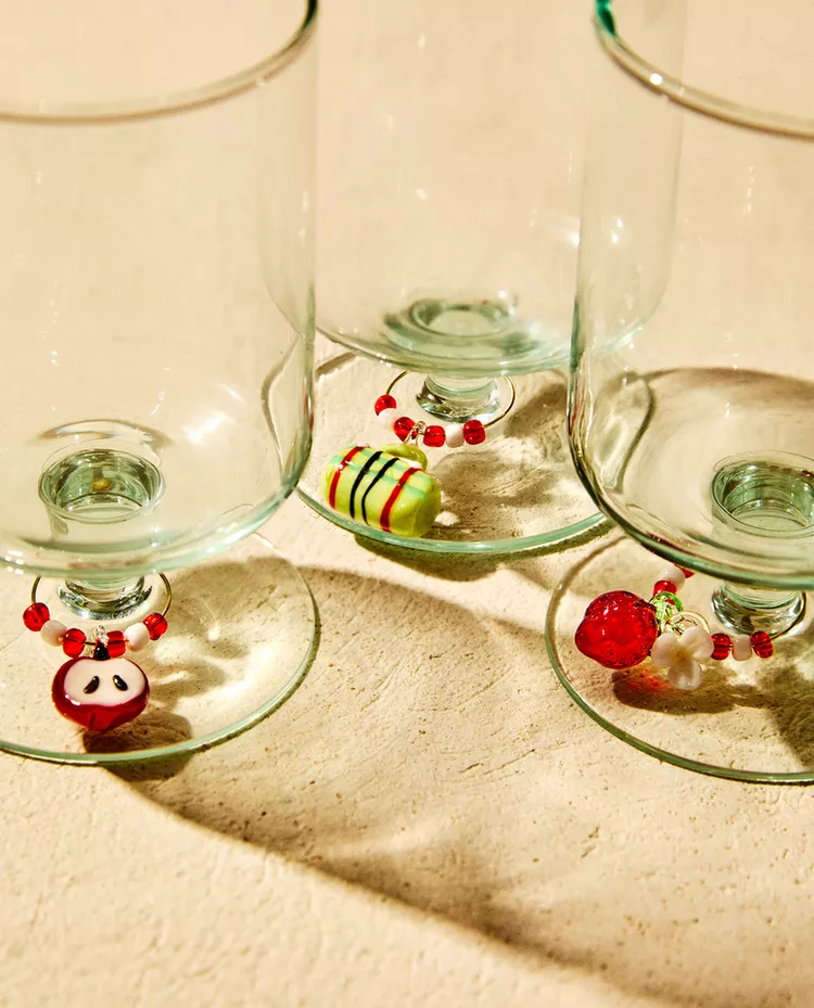 Lorsque l’on cherche à dresser de belles mises en scène pour un dîner, on imagine souvent le plan de table qui va avec. Si les marques places, qu’ils soient en version DIY ou pas, font toujours sensation, une « nouvelle » manière de dissocier les invités fait son apparition. Idéal pour les cocktails comme pour un repas autour d’une table, le marque-verre (que l’on appelle aussi marqueur ou bague de verre) devient incontournable. Une sorte de petit charms personnalisé que l’on accroche au pied du verre pour le pimper et surtout qui permet de différencier sa boisson de celle du voisin. Une tendance qui réapparaît alors que les traditions renaissent. Si longtemps on a adoré faire des mix & match de vaisselle, en jouant notamment avec des verres graphiques et colorés, en 2025, l’ambiance est plutôt à la verrerie transparente. Le cristal revient en maître. Chic et élégant, mais qui peut parfois donner lieu à des mises en scène aseptisées. Pour réveiller le tout, on mise alors sur ces petits bijoux.