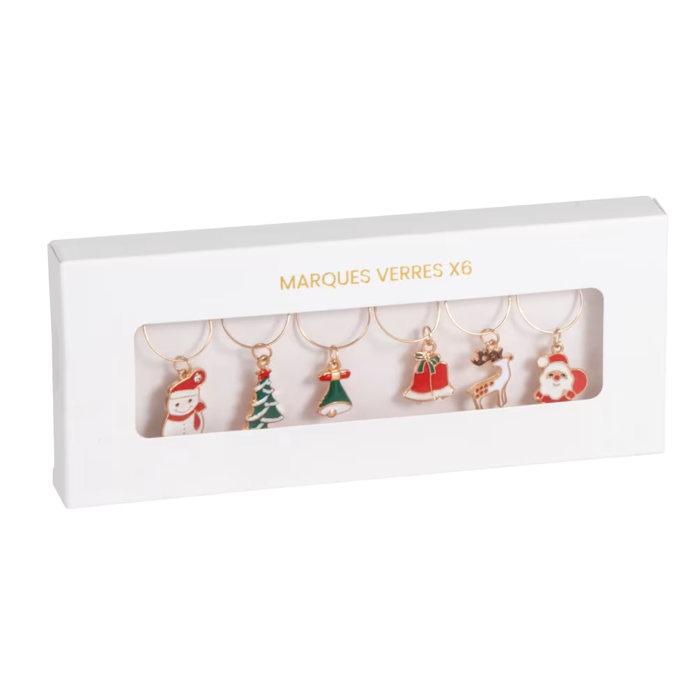 En perles, façon petit nœud en satin ou estampillé d’un charms. Les bijoux que l’on accroche aux verres peuvent s’adapter à toutes les ambiances. Mieux : on peut décider de jouer avec l’imaginaire de Noël (tête du Père Noël, sapin, étoiles…) ou simplement y noter le prénom de nos invités. Il laisse place à une grande créativité, et ça, les marques de décoration comme les maisons de design l’ont bien compris. Dans les collections de cette année, on ne compte plus le nombre de petits bijoux à clipser sur les verres. De quoi remplacer les verres à vin dont le pied se transforme en sapin, en renne ou en étoile, qui ont longtemps fait un tabac.