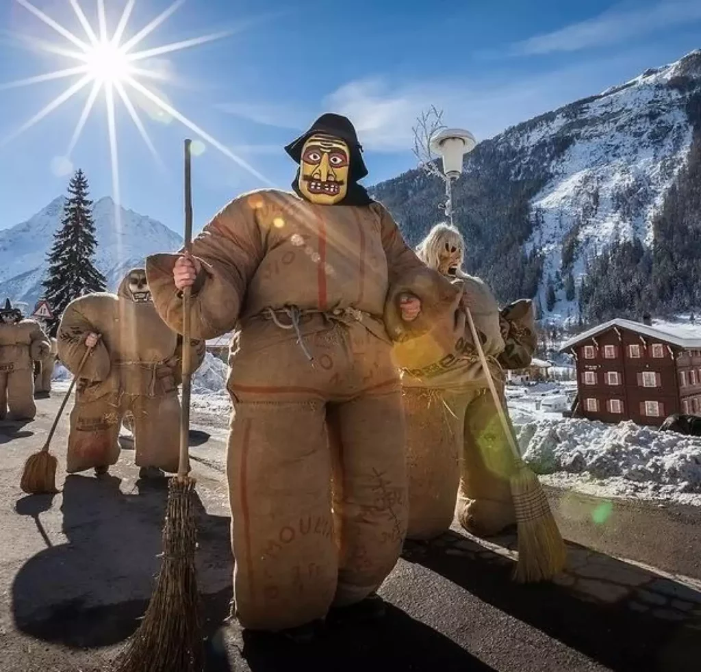 Depuis longtemps, le Carnaval s’inscrit au cœur des anciennes traditions d’Evolène, à travers une manifestation qui débute le jour de la Fête des Rois et se termine le Mardi Gras. À partir du 6 janvier et ce jusqu’au 17 février, lors du traditionnel réveil du Carnaval d’Evolène – où des jeunes du village parcourent les rues en agitant des cloches de vaches pour annoncer les célébrations à venir – les rues de cette commune s’animeront régulièrement de Peluches, d’Empaillés et Maries – toutes des figures typiques de cette fête populaire. Dès la tombée de la nuit, les spectateurs pourront profiter de nombreuses activités ludiques : descentes aux flambeaux, courses à ski déguisées, moments décontractés aux bars éphémères et bien plus encore. Le grand final ? Cortège et brûlage du bonhomme d’hiver « La Poutratze » sur le bûcher, afin de célébrer l’approche de la saison printanière.