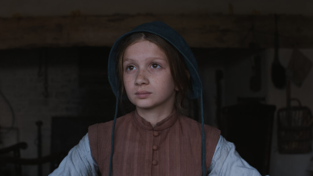 La naissance des jumeaux Judith et Hamnet marquera pourtant un premier basculement vers la peur pour Agnes. Ses visions l’ont toujours persuadée qu’elle n’aurait que deux enfants vivants au moment de sa propre disparition. Dès lors, elle vit dans l’angoisse permanente de perdre Judith (Olivia Lynes), fragile et souvent malade, tandis que William s’absente de plus en plus pour sa carrière.