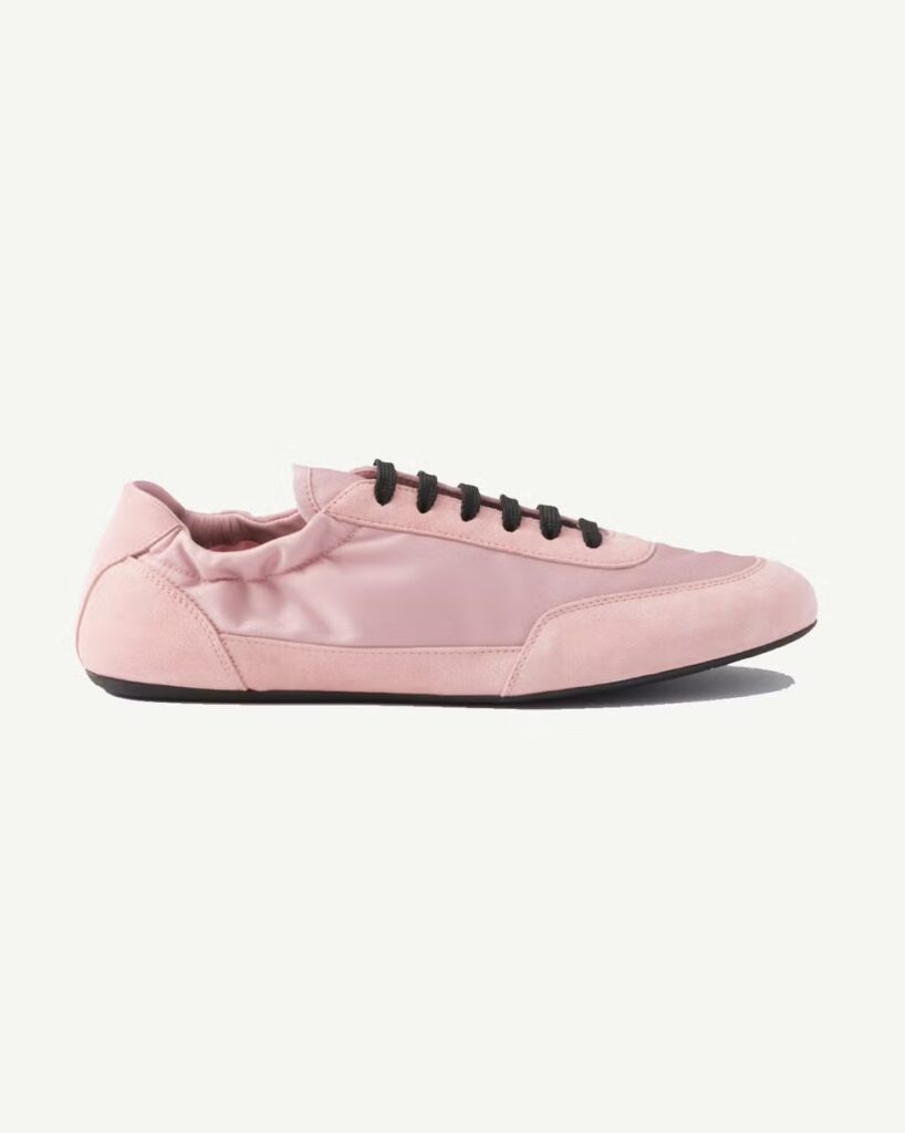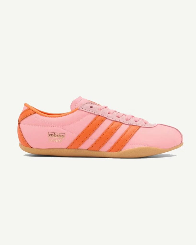 Ces baskets roses et blanches apportent une touche de modernité à une tenue qui, autrement, serait très féminine. Si on adore les porter avec une robe d’été blanche, elles se marient aussi parfaitement avec tout, du pantalon cargo au tailleur plus souple.