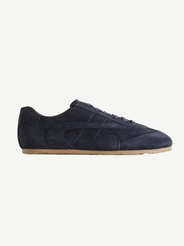 Le bleu marine est une couleur neutre qui se marie avec presque tout. Cependant, pour un impact maximal, essayez d’associer vos baskets marines avec du rose poudré : cela permettra aux deux teintes de vraiment se mettre en valeur.