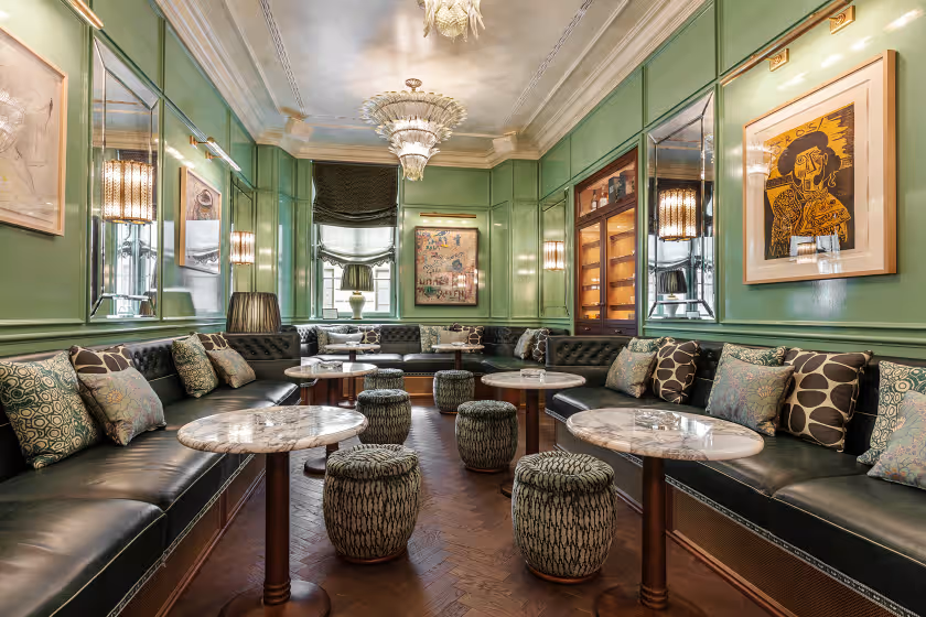 Le Baur’s Bar du Baur au Lac historique allie élégance classique et luxe discret. Bois sombre, lumière douce et fauteuils confortables évoquent l’atmosphère d’un club privé raffiné. Les hôtes savourent des cocktails parfaitement élaborés et des spiritueux premium avec vue sur les jardins paisibles près du lac de Zurich.
