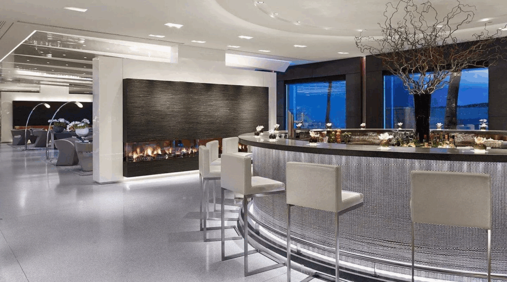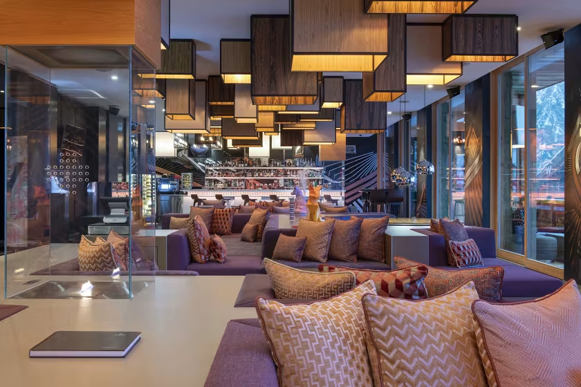 Au W Living Room Bar de Verbier, l’énergie alpine rencontre un design contemporain. De grandes baies vitrées offrent une vue sur les sommets environnants, tandis que les intérieurs modernes et une cheminée centrale créent une atmosphère vibrante. Cocktails créatifs, DJ sets et public animé en font un lieu incontournable de l’après-ski, qui se prolonge naturellement en soirée.