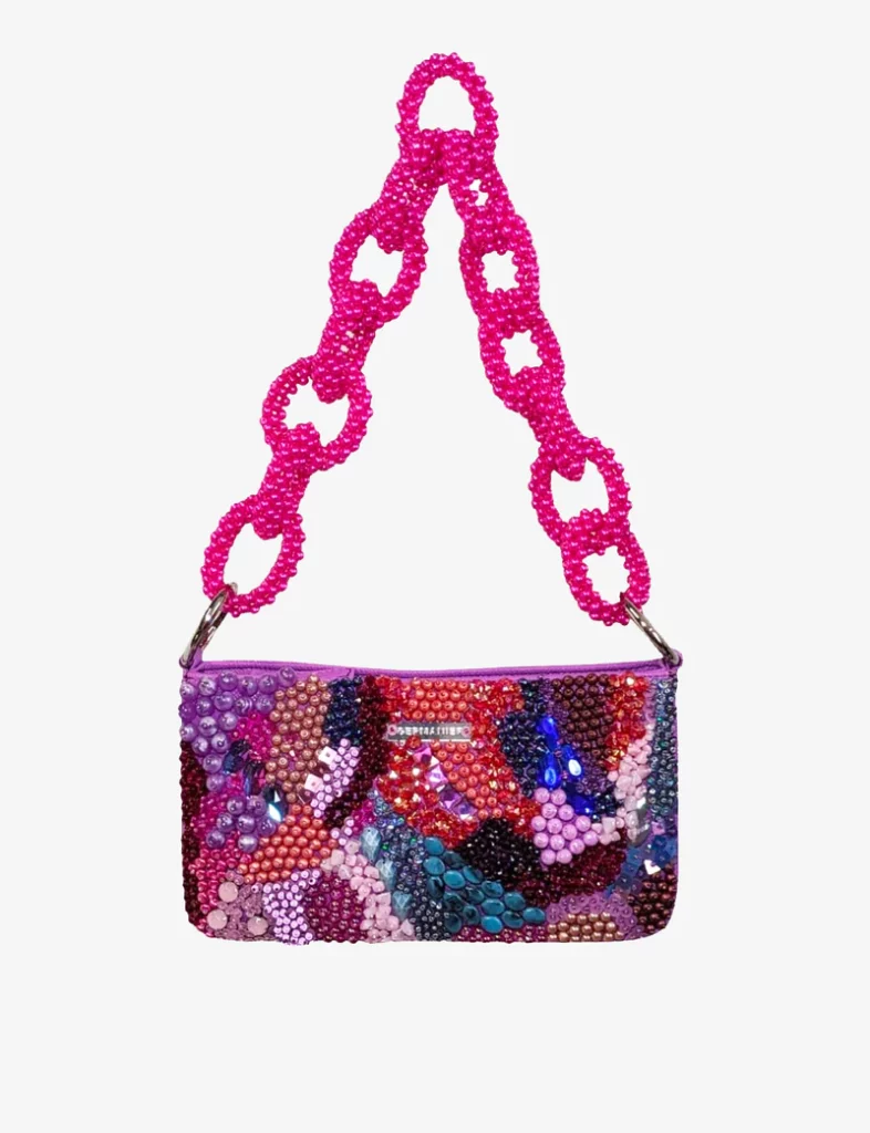 Le « Trésorium Fuchsia » de Germanier s’inscrit dans l’élan du premier défilé Haute Couture printemps-été 2025. Avec son rose fuchsia éclatant et son design audacieux, il apporte instantanément du caractère à n’importe quelle tenue, qu’elle soit dans des tons nude ou plus festifs. Ce sac est une pièce forte, idéale pour sublimer votre look avec originalité.