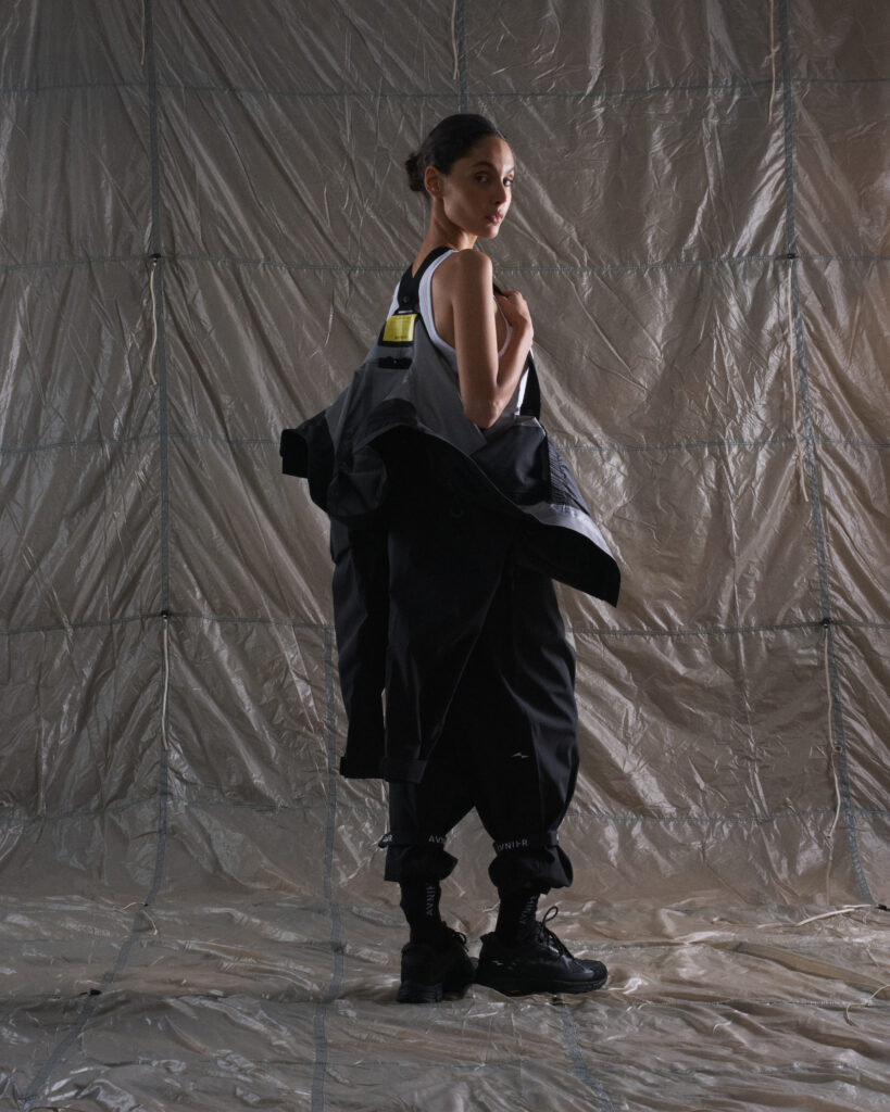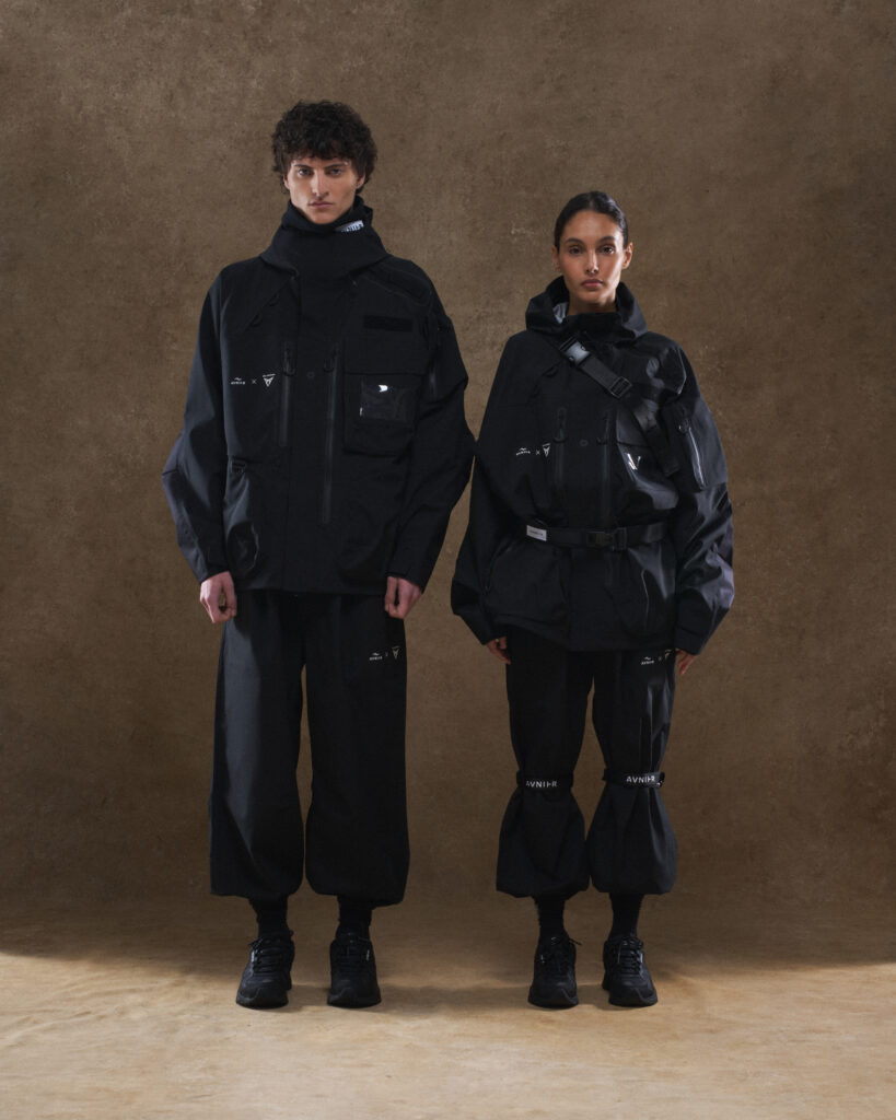 De quoi entraîner une silhouette « radicale », décrit le co-fondateur d’Avnier, Sébastian Strappazzon, qui précise un propos à la croisée de plusieurs imaginaires : « Une pièce qui évoque à la fois un vêtement utilitaire et presque un uniforme » avec « un mélange d’influences entre l’équipement de parachutistes et une silhouette presque ninja ». Le designer et directeur artistique suisse cite par ailleurs des références plus personnelles, comme les volumes aperçus dans le clip « Triumph » (1997) du Wu-Tang Clan, qui a marqué sa jeunesse.