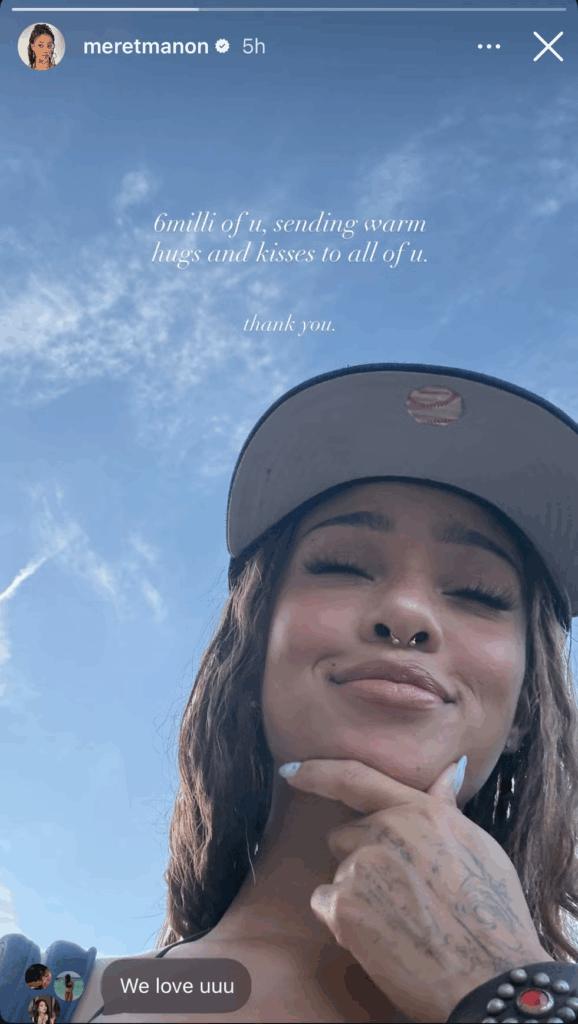 Lors du week-end 1, Manon Bannerman a publié une Story Instagram depuis Coachella avec un message adressé aux fans : « « 6 millions d’entre vous, je vous envoie des câlins et des bisous bien chaleureux à tous. Merci. » Elle a également été aperçue ce soir-là en train d’assister au show de Sabrina Carpenter aux côtés de Chappell Ronan.