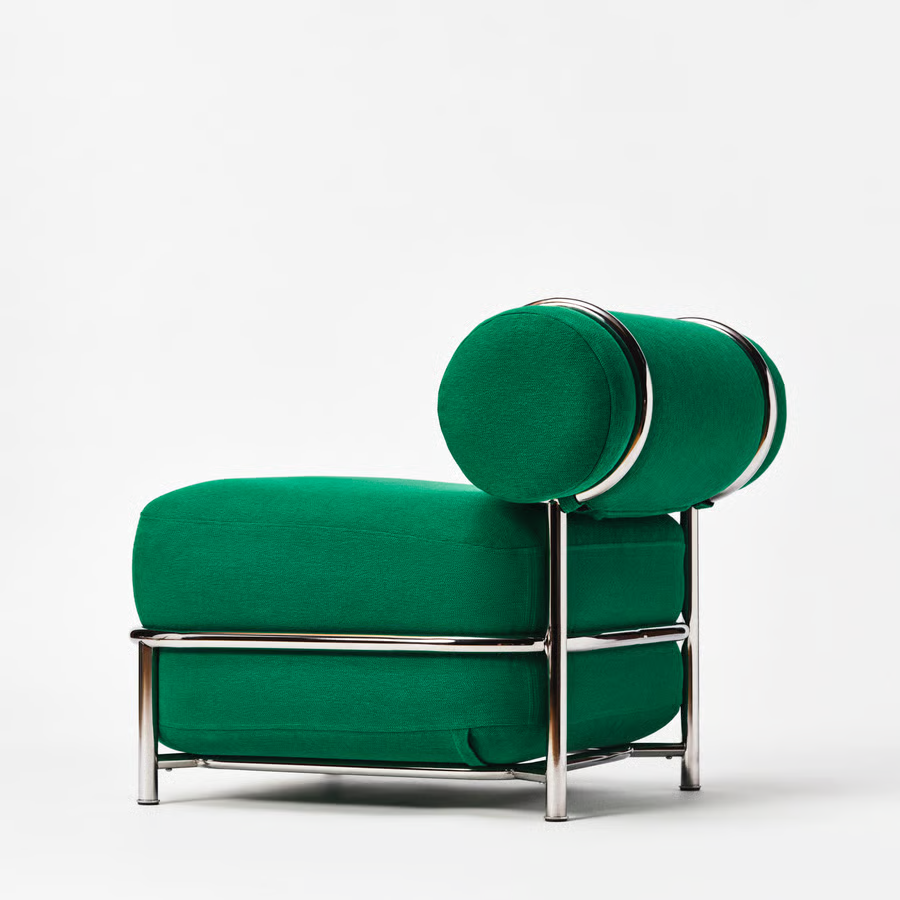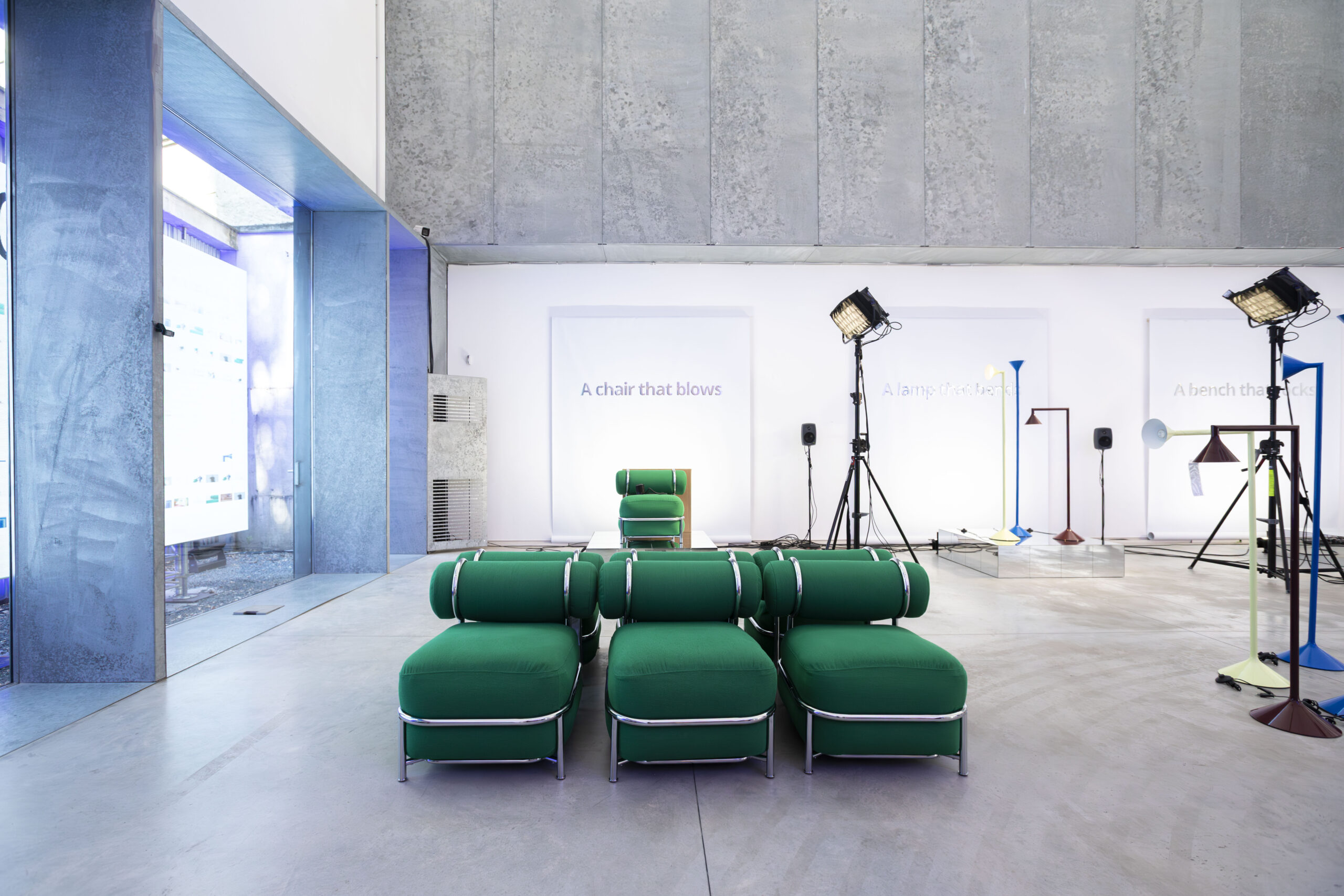 Au milieu du Spazio Maiocchi, un grand blocos brutaliste investi par la marque pour la design week de Milan, une pièce dénote. Posé sur une structure en acier carbone qui se reflète dans la stèle miroitante imaginée pour l’occasion, le fauteuil de Mikael Axelsson attire les curieux. La clé de son succès ? Un vert profond, pile dans la tendance 2026 et une assise gonflable qui surprend. Certains ne l’ont même pas remarqué tant il sait rester confortable. Une « easy chair » (comprendre « fauteuil facile) qui porte bien son nom.
