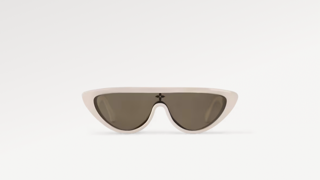 Beauté du dessin chez Louis Vuitton avec des courbes gracieusement étudiées: structure blanche classique et verre noir d’une seule pièce avec un esprit «yeux de chat». Invention de la forme félinement chic.