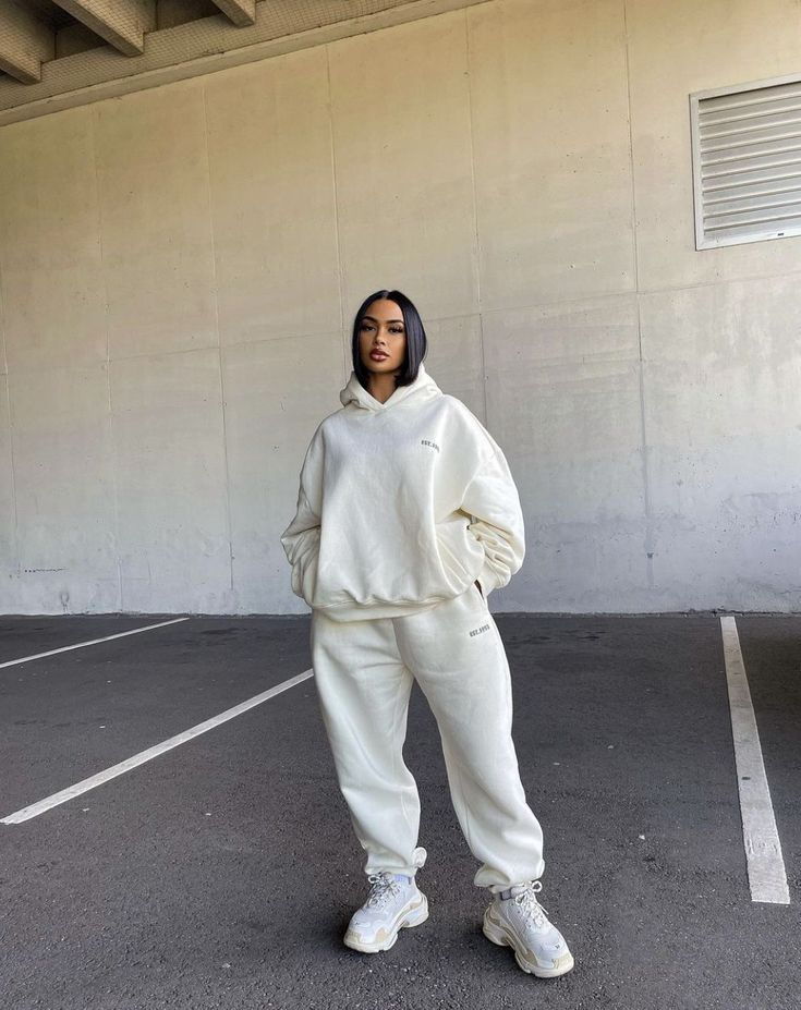 Dans le style confortable avec un sweat-shirt parfait, vous pouvez aussi opter pour un ensemble en associant la pièce avec un pantalon de survêtement, tel que l’influenceuse Alicia Bonora. Choisissez un ensemble aux couleurs minimalistes et surpassez-la en ajoutant une touche d’élégance en accentuant avec des chaussettes rouges. Vous obtiendrez ainsi un look parfait pour siroter des boissons en toute décontraction dans votre quartier.